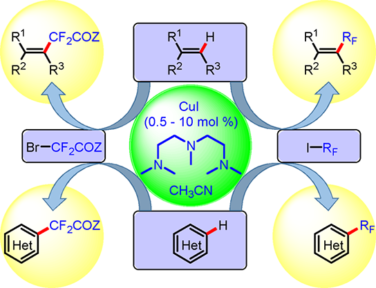 32. Wang, X.; Zhao, S.; Liu, J.; Zhu, D.; Guo, M.;* Tang, X.;* Wang, G.* Copper-Catalyzed C?H Difluoroalkylations and Perfluoroalkylations of Alkenes and (Hetero)arenes.Org. Lett. 2017,19, 4187-4190.