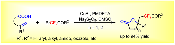 41. Yuan, F.; Zhou, S.; Yang, Y.; Guo, M.; Tang, X.;Wang, G.* Copper Catalyzed One-Pot Difluoroalkylation and Lactonization of Unsaturated Carboxylic Acids.Org.Chem. Front. 2018,5, 3306-3309. DOI: 10.1039/C8QO00940F