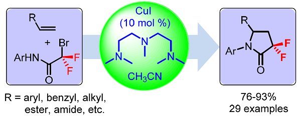 34. Chen, H.; Wang, X.; Guo, M.; Zhao, W.; Tang, X.;* Wang, G.* Highly Efficient and Versatile Synthesis of α,α-Difluoro-γ-lactams via Aminodifluoroalkylation of Alkenes.Org.Chem. Front. 2017,4, 2403-2407. DOI: 10.1039/c7qo00611j