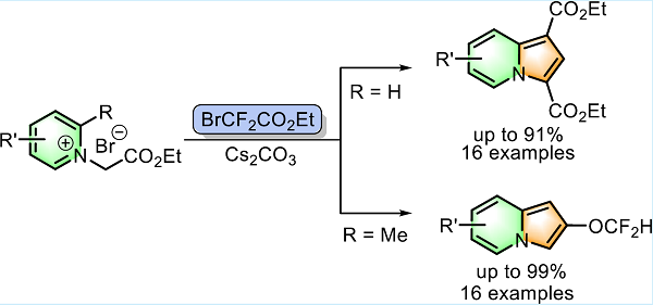 52. Hou, X.; Zhou, S.; Li, Y.; Guo, M.*; Zhao, W.; Tang, X.; Wang, G.* Synthesis of Indolizines from Pyridinium Salts and Ethyl Bromodifluoroacetate.Org.Lett.2020,22, 9313-9318. DOI: 10.1021/acs.orglett.0c03540