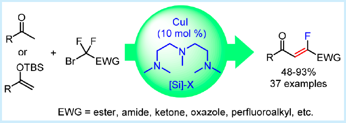36. Li, Y.; Liu, J.; Zhao, S.; Du, X.; Guo, M.;* Zhao, W.; Tang, X.; Wang, G.* Copper-Catalyzed Fluoroolefination of Silyl Enol Ethers and Ketones towards the Synthesis of β-Flouroenones.Org.Lett.2018,20, 917?920. DOI: 10.1021/acs.orglett.7b03700