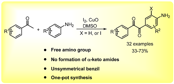 30. Zhang, H.; Ren, X.; Zhao, W.;* Tang, X.; Wang, G.* One-pot Synthesis ofp-Amino-substituted Unsymmetrical Benzils and Benzil Derivatives.Adv. Synth. Cat. 2017,359, 395-401. DOI: 10.1002/adsc.201600389