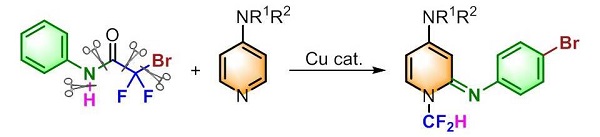 51. Chen, H.; Yang, Y.; Wang, L.; Niu, Y.; Guo, M.; Zhao, W.; Tang, X.; Wang, G.* Slicing and Splicing of Bromodifluoro-N-arylacetamides: Dearomatization and Difunctionalization of Pyridines.Org.Lett.2020,22, 6610-6616. DOI: 10.1021/acs.orglett.0c02368