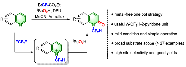 55. Zhou, S.; Hou, X.; Yang, K.; Guo, M.; Zhao, W.; Tang, X.; Wang, G.* Direct Synthesis of N-Difluoromethyl-2-pyridones from Pyridines.J.Org.Chem.2021,86,in revision.