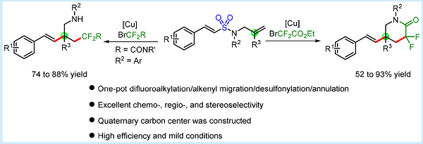 40. Wang, X.; Liu, J.; Yu, Z.; Guo, M.; Tang, X.;Wang, G.* Desulfonylation-Initiated Distal Alkenyl Migration in Copper-Catalyzed Alkenylation of Unactivated Alkenes.Org.Lett.2018,20, 6516-6519. DOI: 10.1021/acs.orglett.8b02840