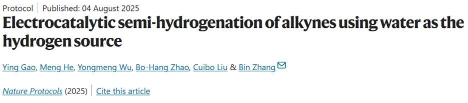 论文原文:Electrocatalytic Semi-Hydrogenation of Alkynes using Water as the Hydrogen Source. Nat. Protoc. 2025, https://doi.org/10.1038/s41596-025-01230-z