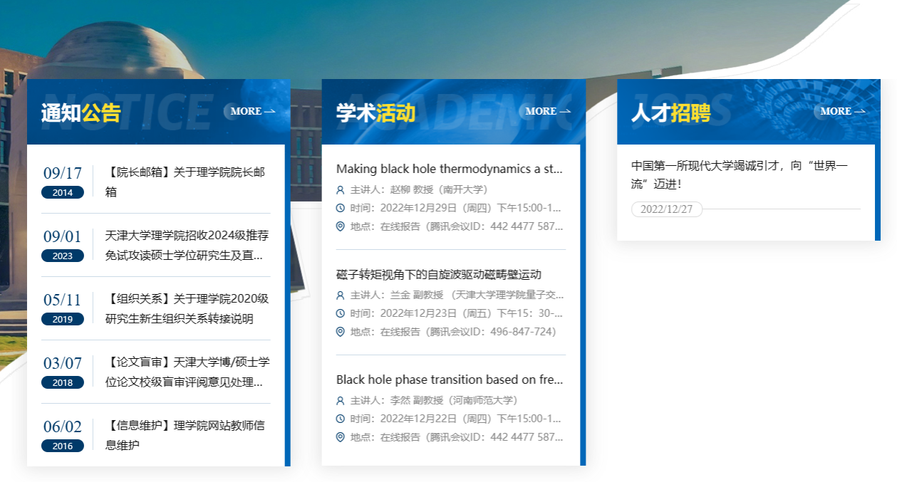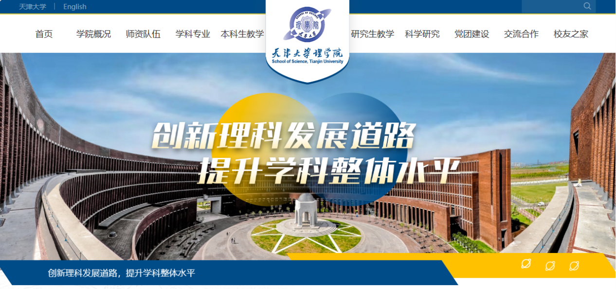 同时,理学院新官网的全英文网页也已同步上线。为促进理学院国际化建设、推动学术合作、吸引优秀人才发挥重要作用。