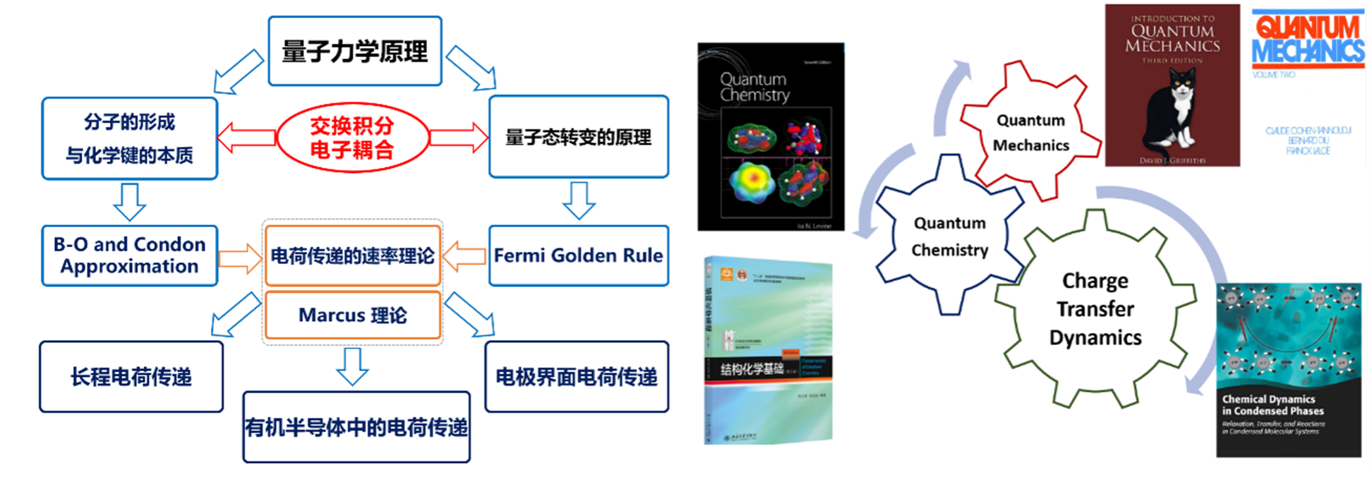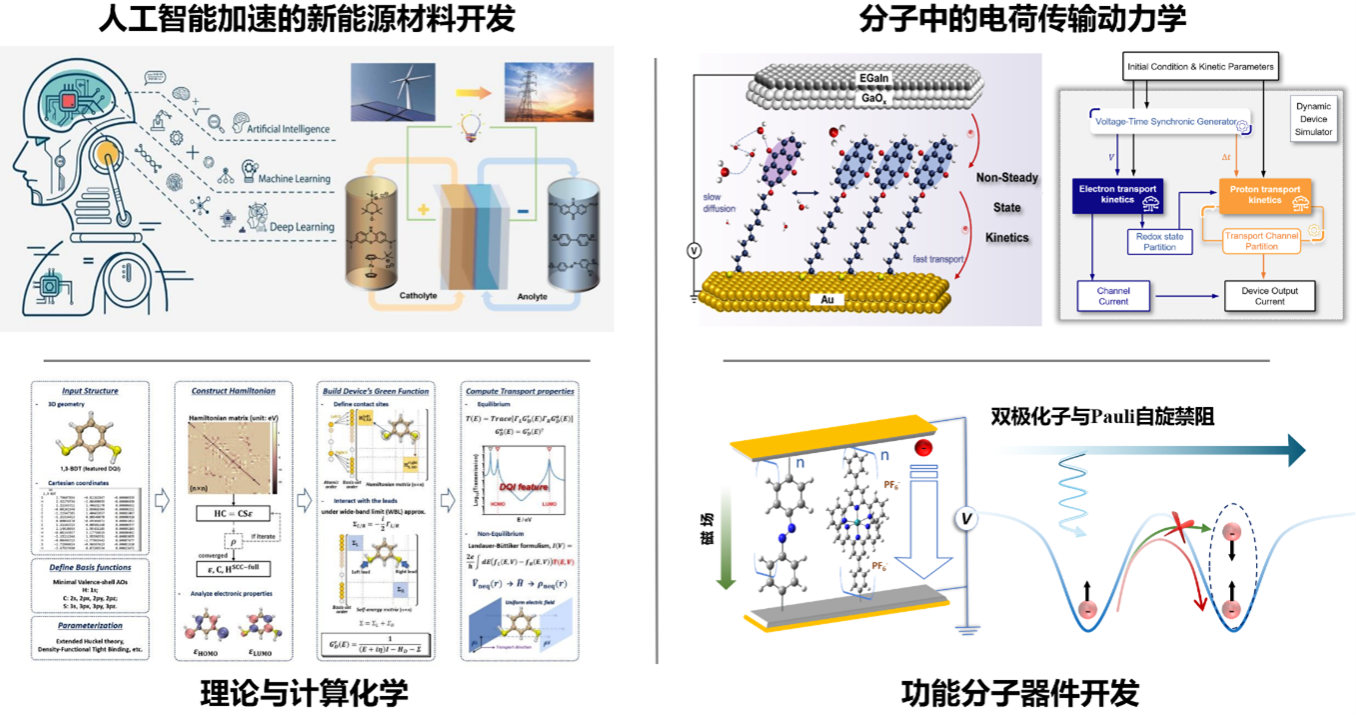 光电材料与新能源材料,理论与计算化学,人工智能化学,电荷传递动机理与动力学,分子器件,非线性化学动力学,神经形态计算