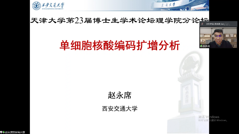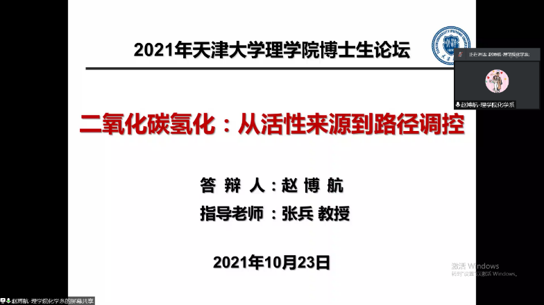 图1 理学院李振院长、理学院刘昌龙书记、研究生院培养办齐崴主任分别为2021年天津大学博士生学术论坛理学院分论坛致辞、讲话