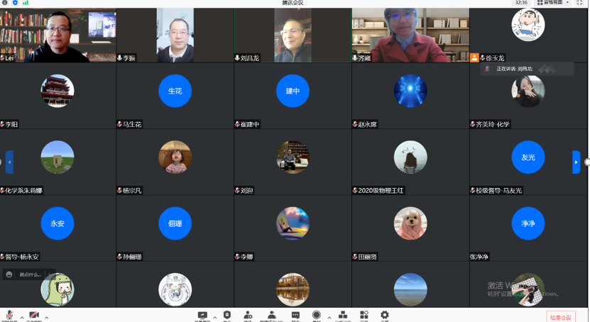 研究生院培养办主任齐崴,理学院党委书记刘昌龙,理学院院长李振,校督导专家杨永安和马友光教授应邀出席此次论坛。国家自然科学基金杰出青年基金获得者华东理工大学刘培念教授和西安交通大学赵永席教授,中国科学院半导体研究所刘岳阳研究员应邀出席论坛并作大会报告。化学系主任雷圣宾,两系分管研究生工作的副主任朱莉娜和王子武,化学系和物理系的多位硕、博士导师,学院负责研究生教务的王莉和高雪老师,两系博、硕士研究生群体参加了此次论坛。本次论坛还借助网络论坛的开放性优势,特别鼓励理学院的本科生积极参会,作为实施本研贯通创新人才培养中的一项举措。