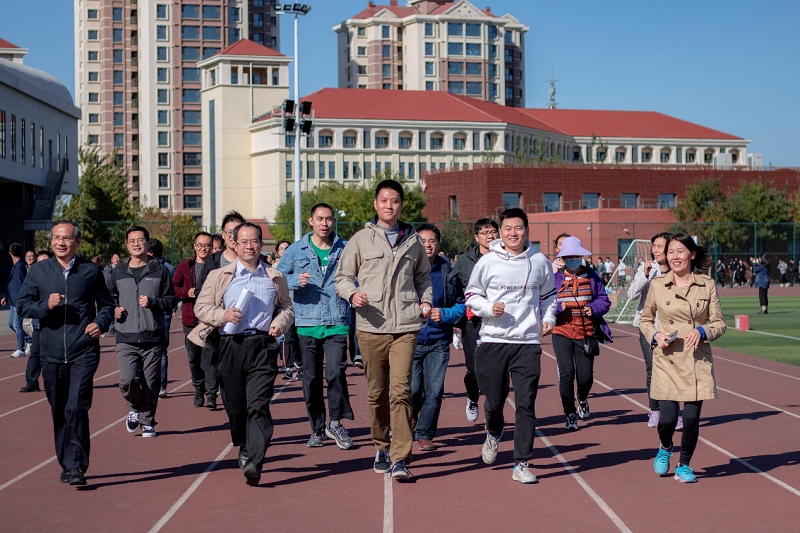 运动会伊始,全体参会教工在学院领导的带领下绕操场跑步一周,以此仪式开启了以“喜迎国庆健步走, 爱我天大快乐行”为主题的理学院教工健步走活动。