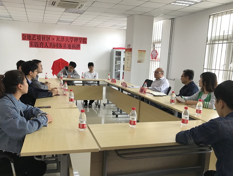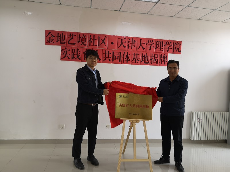(通讯员:聂炳荣)2019年10月11日,“天津大学理学院-金地艺境社区实践育人共同体”揭牌仪式在金地艺境社区举行,辛庄镇副镇长刘洪涛,金地艺境党支部书记兼居委会主任杨建民,理学院团委副书记荣渤焜出席,金地艺境党支部成员刘森、理学院辅导员兼本科生第二党支部书记聂炳荣以及理学院本科生第二党支部成员和积极分子代表参加了揭牌仪式。不忘初心、牢记使命,共同打造实践育人共同体,引导青年学生走进基层,在社会实践中增长才干、成长为德智体美劳全面发展的社会主义合格建设者和可靠接班人。