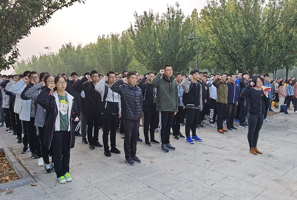 23日清晨,迎着朝阳,理学院2019级、2018级本科生与理学院部分学生党员齐聚北洋园国旗下观看升旗仪式。学生们目视五星红旗冉冉升起,耳边响起铿锵的国歌,闪耀的红旗像红霞,似火炬,承载着所有理院学子的骄傲与热爱。