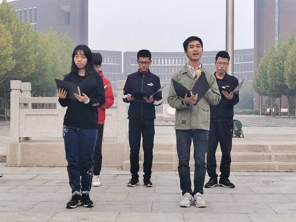 不忘初心,牢记使命,誓词是全体党员、团员永远铭记的誓言。活动最后,吴頔带领全体团员学生宣读入团誓词,王作金带领全体党员重温入党誓词。在校歌中,本次活动圆满落幕。怀揣家国之梦是青年学子最好的姿态,珍惜韶华、奋发有为,融入新中国蓬勃发展的血脉之中,就一定能够创造出美好的未来!