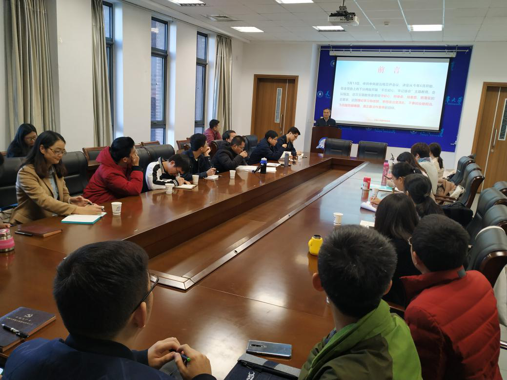 根据理学院开展“不忘初心、牢记使命”主题教育工作安排,10月28日下午,理学院党委书记刘昌龙以《不忘初心、牢记使命,不断加强理学院党支部建设》为题,为学院全体在职教工及学生党支部书记、教师党员代表30余人主讲了一场深刻的主题教育专题党课,围绕主题教育的意义、基层党组织建设的新要求、当前学院党建工作中存在的主要问题和加强学院党支部建设的工作举措等方面进行讲述。