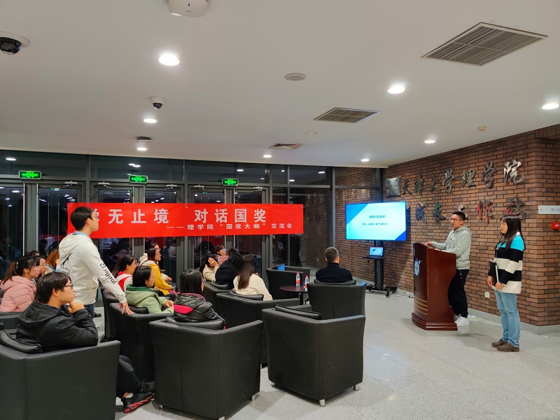 本次交流会诚挚邀请到理学院2018级化学专业博士生李玉森和2017级理论物理专业硕士生厉岳洲进行经验分享。两位主讲人结合自身科研工作经历和经验、学科发展前景、科研压力调节、自身素质提升等方面进行了精彩讲述,并回答同学们的疑惑,使大家受益匪浅。