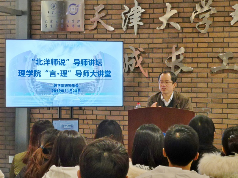 2019年11月28日上午,第十期“北洋师说”导师讲坛暨理学院“言·理”导师大讲堂于32教二层理学院学生成长工作站成功举办。理学院院长李振结合个人成长和科研经历为同学们带来了题为“当代研究生科研创新精神的培养与践行”主题讲座。