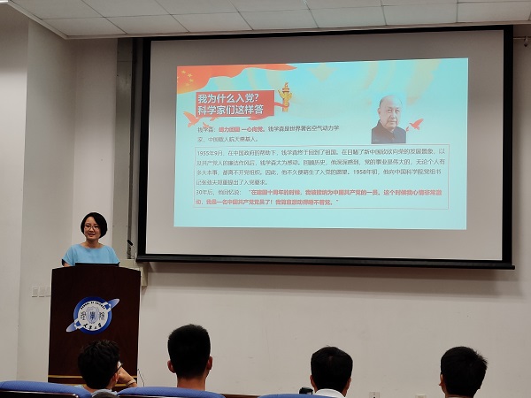 新生周期间,理学院党委学工办主任团委书记吴頔老师与理学院辅导员学生党支部书记赵鹏老师为全体19级新生上了一堂特殊的党课——入党教育。同学们在课程中学习了优秀党员事迹,了解了天津大学入党流程,也更加坚定了新生们的入党信念。