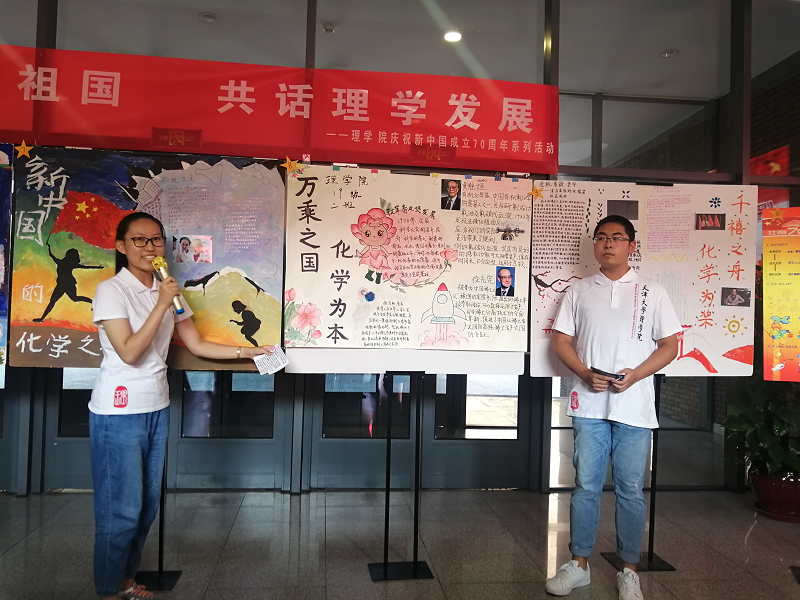 结合“不忘初心、牢记使命”主题教育精神,激发学生的爱国之情和强国之志,天大理院学子积极采用多种方式表达对祖国的拳拳深情与深切祝福,共同庆祝中华人民共和国成立70周年。9月29日下午,理学院学生工作办公室于32教一楼大厅举办“青春献礼祖国,共话理学发展”特色展板设计展览活动。通过回顾过去70年中理学发展历程和展望未来学科前进方向,激励理院学子求实创新、锐意进取、不忘初心、牢记使命。