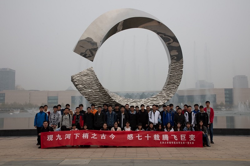 为庆祝中华人民共和国成立70周年,纪念五四运动100周年,2019年4月13日,天津大学理学院本科生第一党支部联合2017级应用物理学专业团支部,以“青春心向党·建功新时代”为主题,共同开展主题党团实践活动,前往全国爱国主义教育示范基地——天津博物馆参观学习“中国百年看天津”主题展览,观九河下梢之古今,感七十载腾飞巨变。