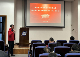 随后,化工学院大型仪器测试平台副主任靳凤民从平台概况、运行模式、人才培养、发展方向四个方面向全体师生党员分享了关于化工学院大型仪器测试平台建设情况。他表示,为满足学校师生的仪器使用,通过实施24小时仪器预约制,切实解决学生的预约难题。同时,平台将致力于解决能源和健康领域中仪器测试的重难点问题,为我校学科发展提供有力支撑。