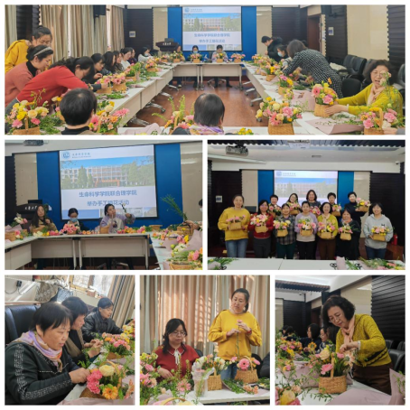 3月8日中午,理学院联合生命科学学院工会在卫津路校区15教共同开展了鲜花插花活动。花艺老师向大家介绍了插花艺术方面的知识,演示了花卉的选择、颜色的搭配、枝叶修剪以及花枝摆放技巧等。活动现场花香四溢,热闹非凡。在花艺老师的指导下,老师们认真修剪花枝,调整造型,插入花泥,一件件灿烂缤纷、新颖别致的插花作品展现在大家面前,大家纷纷举起作品合影留念。