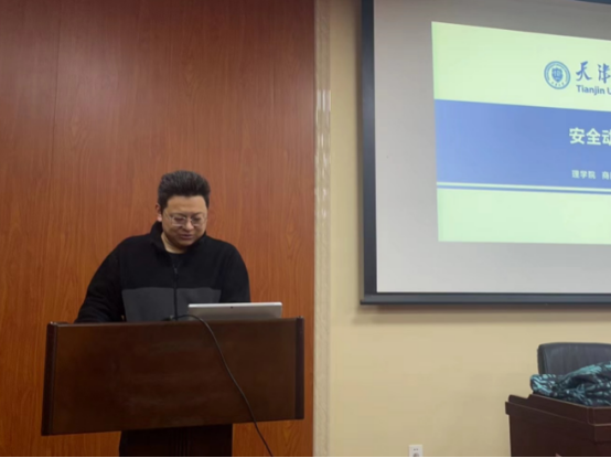 随后,学院后勤秘书商闯老师为与会人员进行了专业的安全培训。他结合近期发生的部分安全事故案例,剖析了事故原因和教训,使大家深刻认识到实验室安全工作的严峻性和紧迫性。之后细介绍了一些实验室常见的安全隐患和预防措施,以及应对突发事件的应急处置方法,对近期的重点安全工作进行了提前布置。