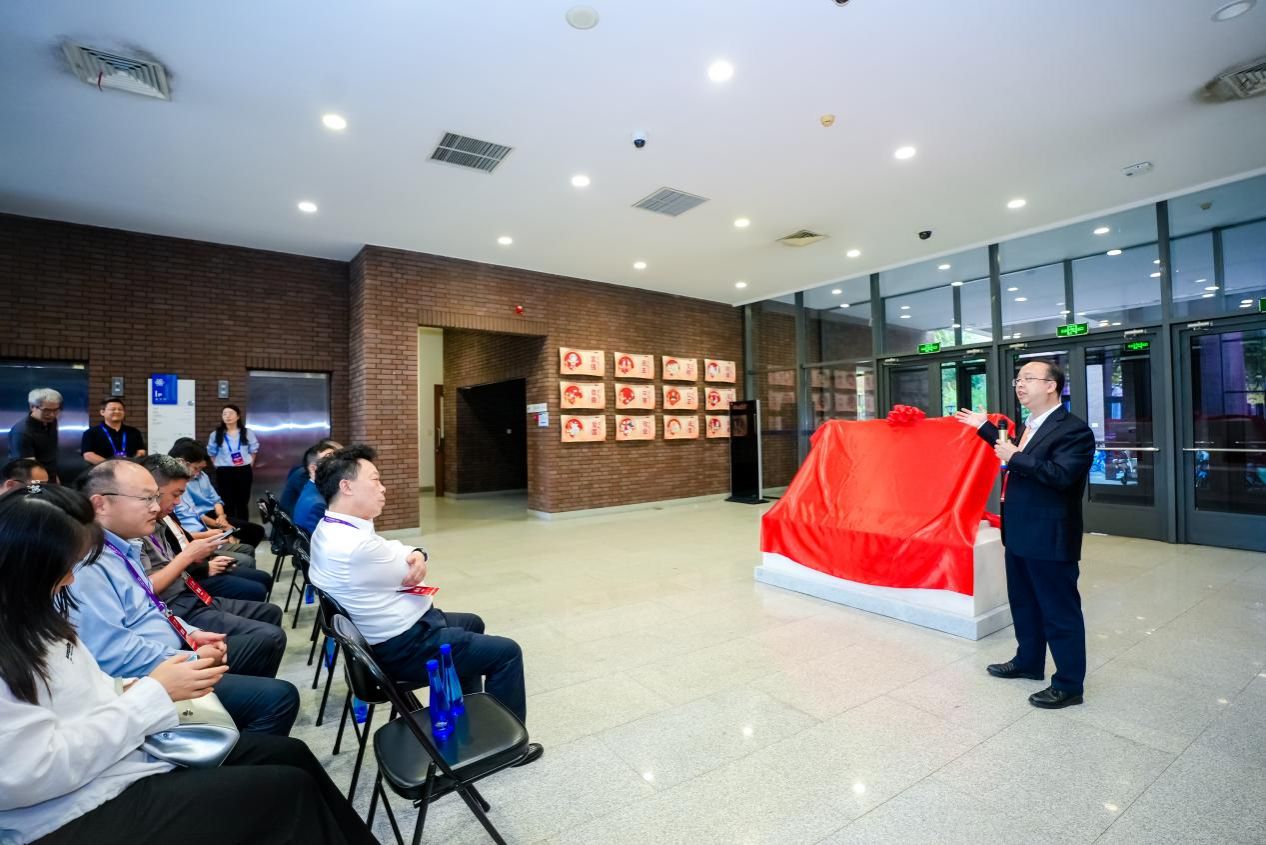 王天友、毛昌辉共同为覆盖在元素石上的红绸揭幕。随着红绸缓缓落下,一方表面镌刻着化学元素周期表及天津大学“实事求是”校训的雕塑正式亮相,石面纹路清晰、信息翔实,寓意着中国有研同天津大学树立起密切牢固的合作关系。