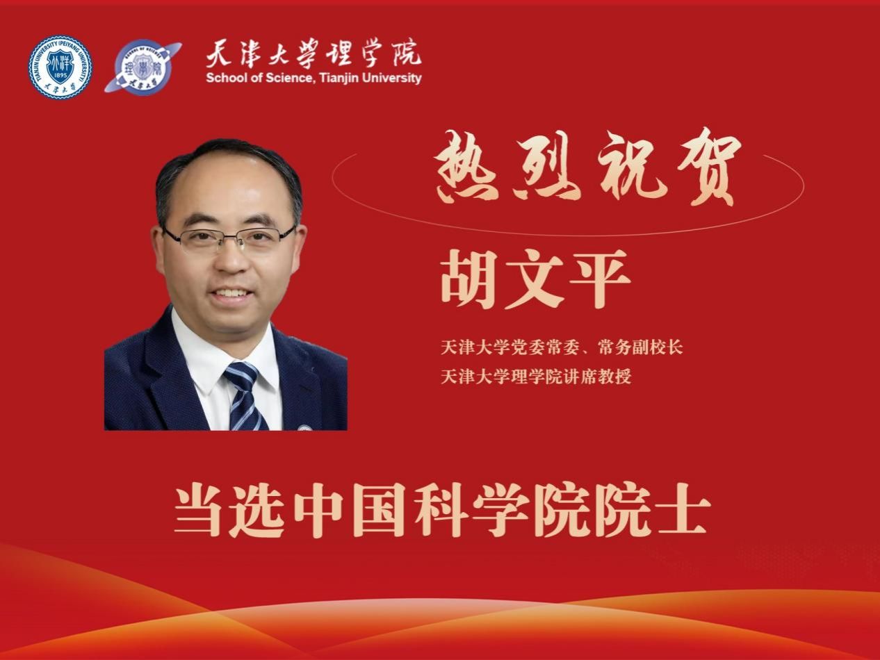 2025年11月21日,中国科学院和中国工程院公布2025年院士增选当选名单。天津大学党委常委、常务副校长、理学院讲席教授胡文平当选中国科学院院士。