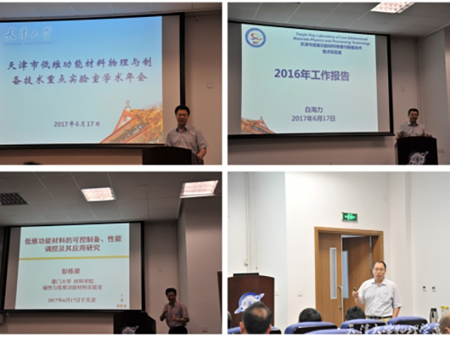 2017年6月17日上午9点,天津市低维功能材料物理与制备技术重点实验室学术委员会会议在天津大学北洋园校区32楼140会议室召开,实验室学术委员会委员、天津大学科研院常务副院长李武、理学院党委书记刘昌龙、工会主席席兆胜及实验室师生共60余人参加会议。李武院长向全体参会人员介绍了实验室学术委员会成员,代表天津大学向参加会议的各位委员表示衷心的感谢和欢迎。重点实验室主任白海力向新一届学术委员会成员颁发聘书。