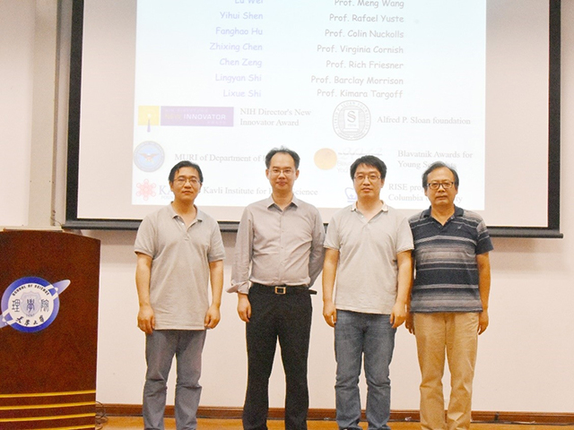 应张晓东研究员邀请,哥伦比亚大学闵炜教授于6月22日下午在32楼140报告厅做了题为“ChemicalImaging for Biomedicine: the Next Frontier of Light Microscopy”的报告。报告会由张晓东研究员主持,物理系刘迎教授、戴海涛教授、胡智鑫老师、郑东兴老师以及精仪学院的部分老师参加。首先张晓东研究员对报告人进行了介绍。闵玮教授2003年本科毕业于北京大学,2008年博士毕业于哈佛大学,师从美国科学院院士谢晓亮教授,之后继续在谢教授团队从事博士后工作,2010年起执教哥伦比亚大学,2017年起任职正教授。闵教授课题组的研究方向是基于分子光谱学开发新型光学显微镜,结合化学探针和生物技术,推动神经科学、癌症检测和疾病诊断等前沿生命科学和医学课题的发展。闵玮教授已经在Science,Nature, Nature Methods, PNAS等顶级刊物上发表论文多篇。其中,闵玮教授团队首次使用受激拉曼散射显微镜突破传统光学成像的颜色极限的工作曾被多个顶级期刊如Nature,Nature Methods专题报导。