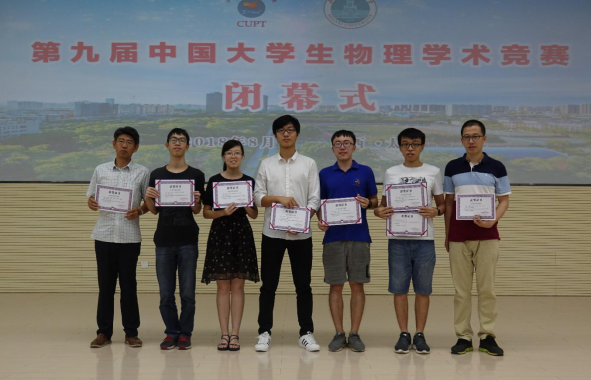 8月15日-19日,第九届中国大学生物理学术竞赛在山西大学举行。由天津大学李仁赟、白易明、霍杰荣、贺立丹路声跃等5名本科生组成的天津大学代表队在天津大学理学院庞海、梁麦林、马丽娜等教师的指导下经过5轮的艰苦比赛,最终荣获一等奖,首次进入全国前十名,取得在本项赛事中的历史最好成绩,其中白易明同学获得赛事最佳正方奖。
