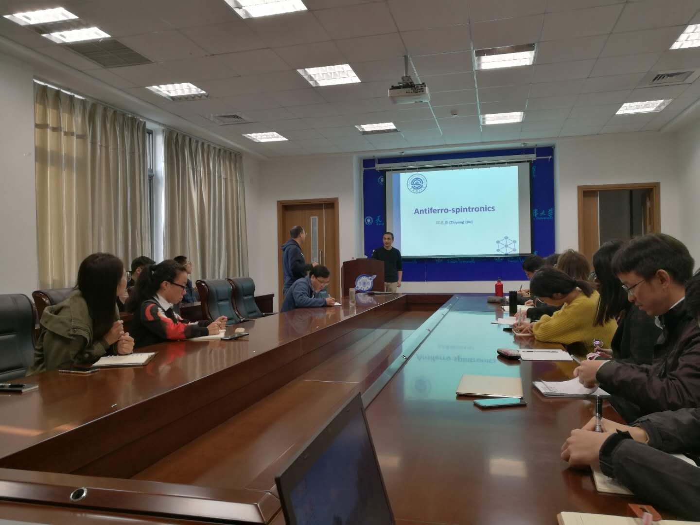 10月22日上午,在32教学楼218教室,物理系邀请大连理工大学邱志勇教授为物理系师生做题为“反铁磁材料在自旋电子学中的应用”的报告,邱志勇教授2004年在北京航空航天大学完成硕士课程,2007年在日本德岛大学获博士学位,先后在日本东京理科大学和东北大学进行科研工作,2017年9月起任大连理工大学材料科学与工程学院教授。邱教授主要从事功能材料与自旋电子学融合领域的研究工作。报告题目为“反铁磁材料在自旋电子学中的应用”,主要围绕反铁磁材料在自旋电子学的研究与前沿方向进行了深入浅出的介绍。报告后,同学们对邱老师的研究方向提出了各种问题,邱老师耐心的为同学们进行了解答,同时邱老师也对同学们提出了殷切的期望,希望同学们能够在学习知识的同时,进行更为深入的思索和探讨,对科学的前沿勇敢的提出自己的见解并为之努力!