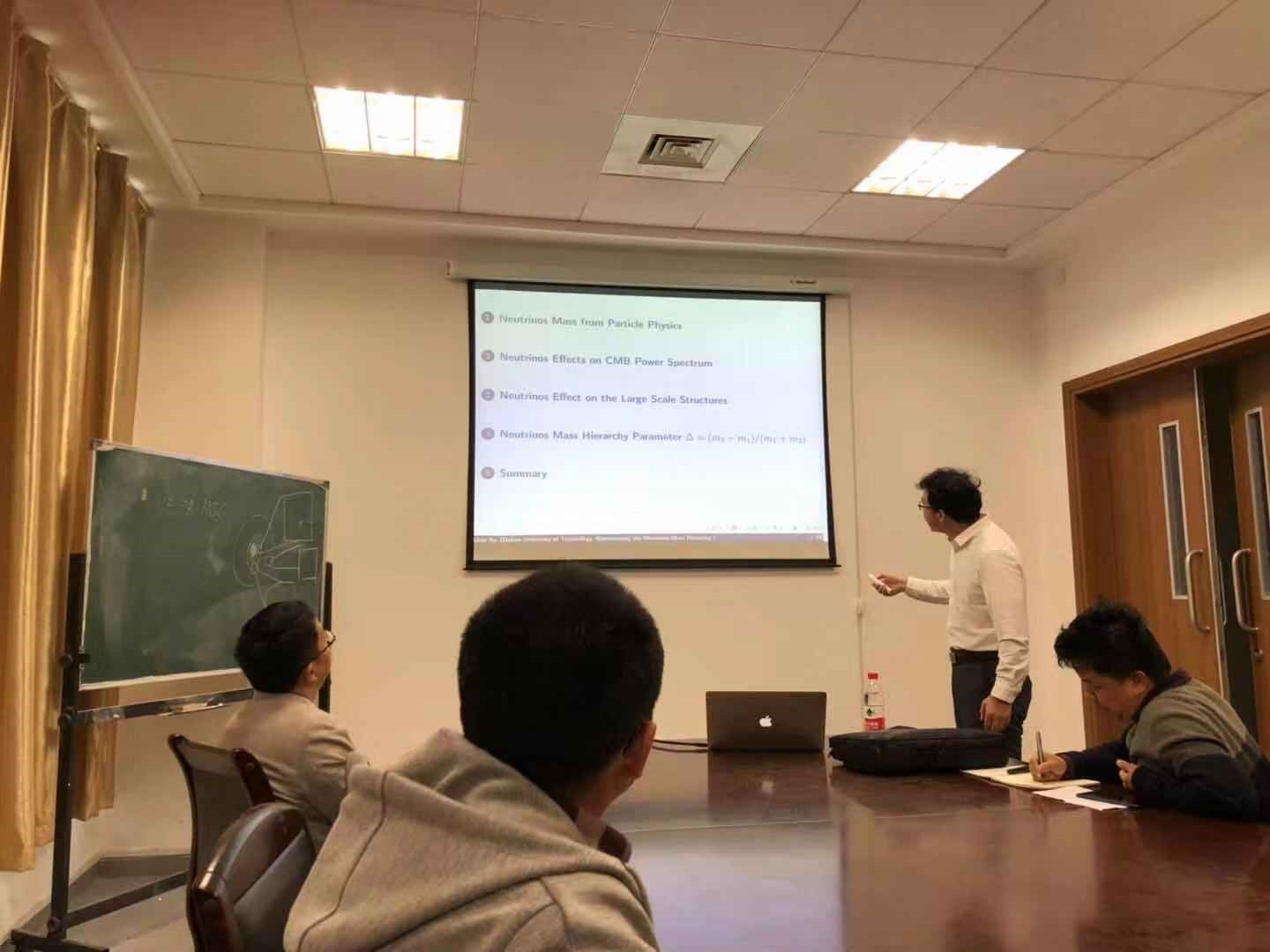 2018年10月26日下午,应天津大学量子交叉研究中心吕宏教授、吴俊宝教授的邀请,大连理工大学徐立昕教授来我系进行学术交流,并在32教学楼256教室做了题为Determining the NeutrinosMass Hierarchy from Cosmological Data的学术报告。报告会由量子交叉研究中心吴俊宝教授主持。