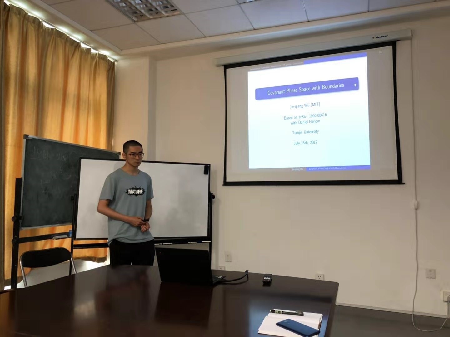 2019年7月16日下午,应天津大学量子交叉研究中心吴俊宝教授的邀请,美国麻省理工学院(MIT)吴洁强博士来我系进行学术交流,并在32教学楼256教室做了题为Covariant phase space withboundaries的学术报告。